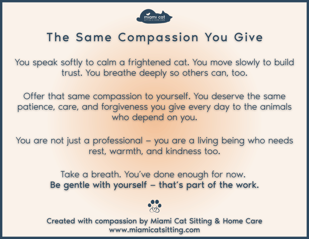 Each card is written for the caregivers who hold calm for others: sitters, vet techs, groomers, rescuers — the ones who steady anxious animals and soothe worried clients while keeping their own hearts open.